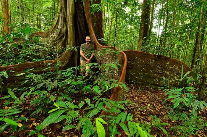 The purpleheart tree (Peltogyne venosa) forms massive buttress roots which provide support, especially during