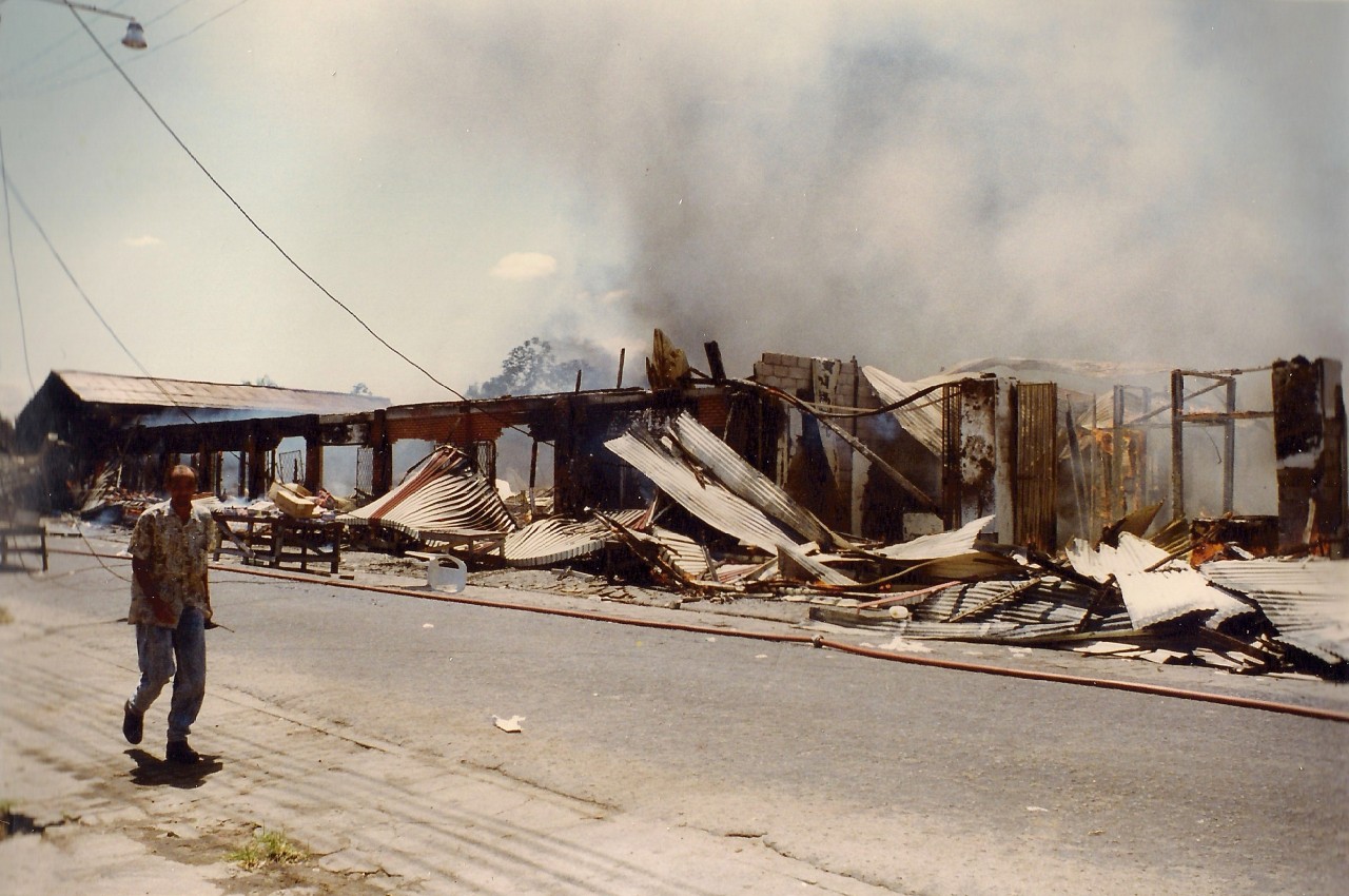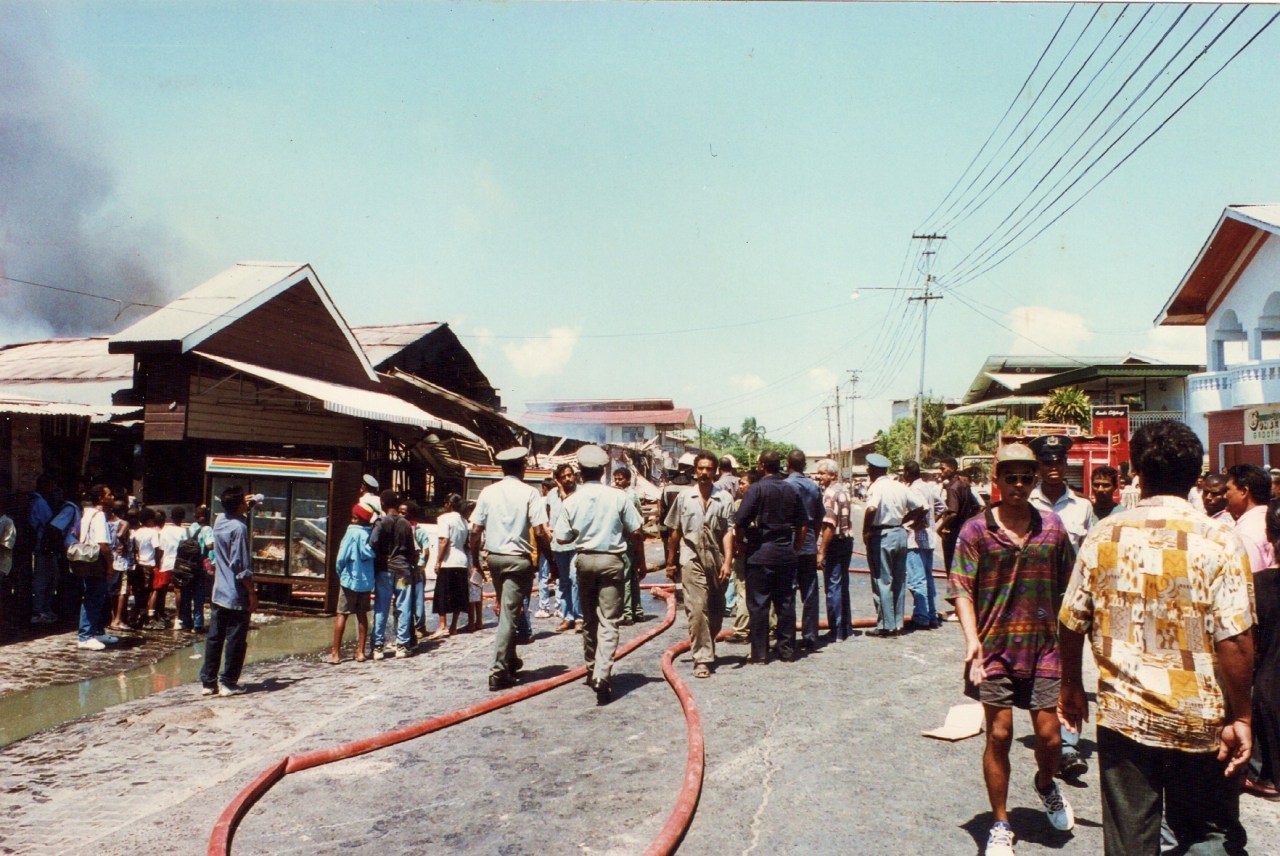 15 october 1997. It was time to leave Surinam and Paramaribo. This morning I went to the “Combé Market” and was planning to buy the first supply’s for the coming trip… No way I could buy anything there anymore!! It was a pity, such a fine place to buy all you need and…very cheap too! And all those people who lost there business and income! Terrible!!! Now we had to go to the centre of town and there I felt treated as a tourist. … I hope it is rebuilt now.