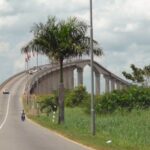 Jules Wijdenbosch Bridge crossing the Suriname River connecting Parimaribo District and village Meerzorg in Suriname.